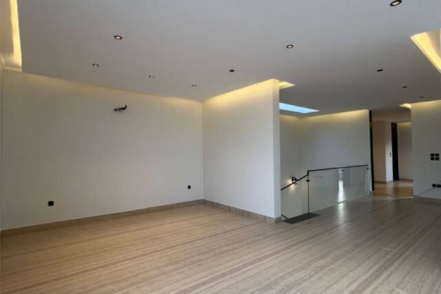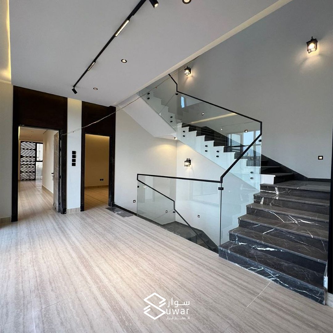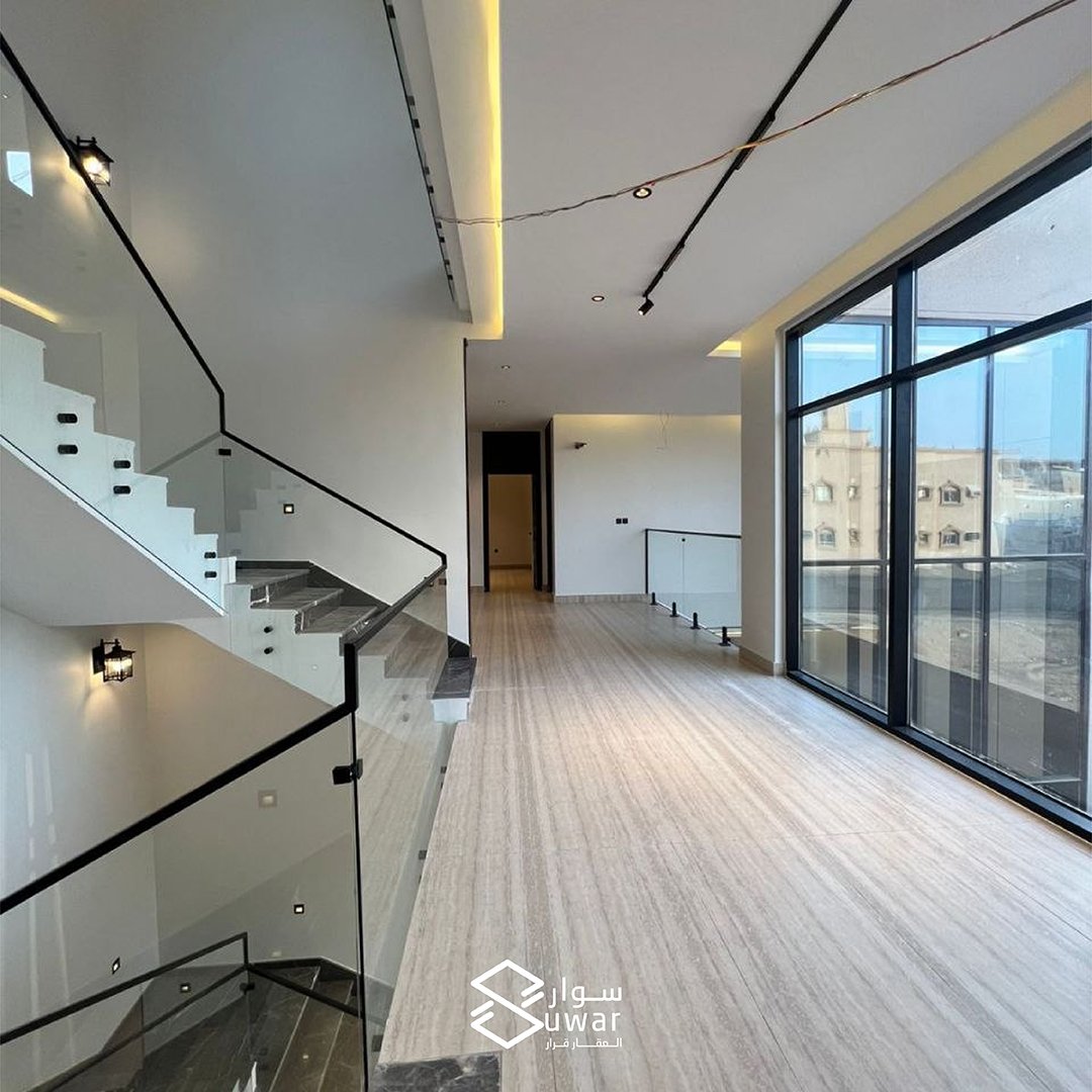 الدور الاول : ٤ غرف نوم منها ثنتين ماستر + صالة + سيرفس + دورة مياة